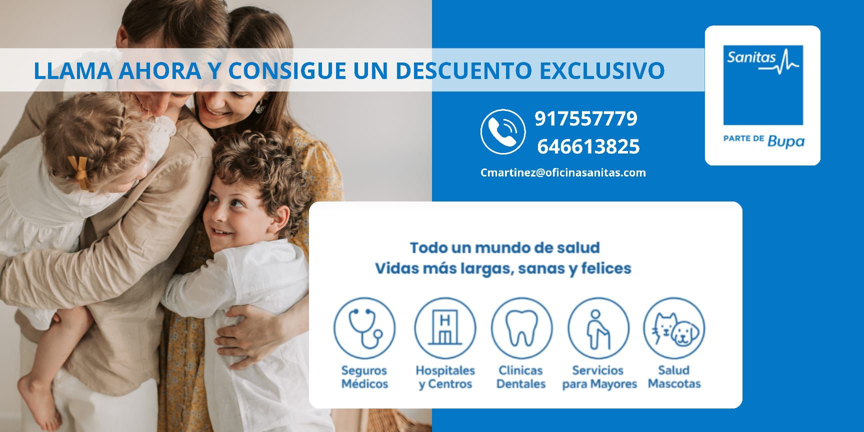 - Sanitas Más Salud Familias: Asistencia sanitaria completa con opciones de copago bajo o sin copagos.