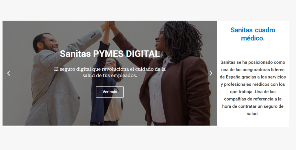 - Sanitas Activa Digital: El seguro 100% digital diseñado para empleados, sin carencias ni copagos.